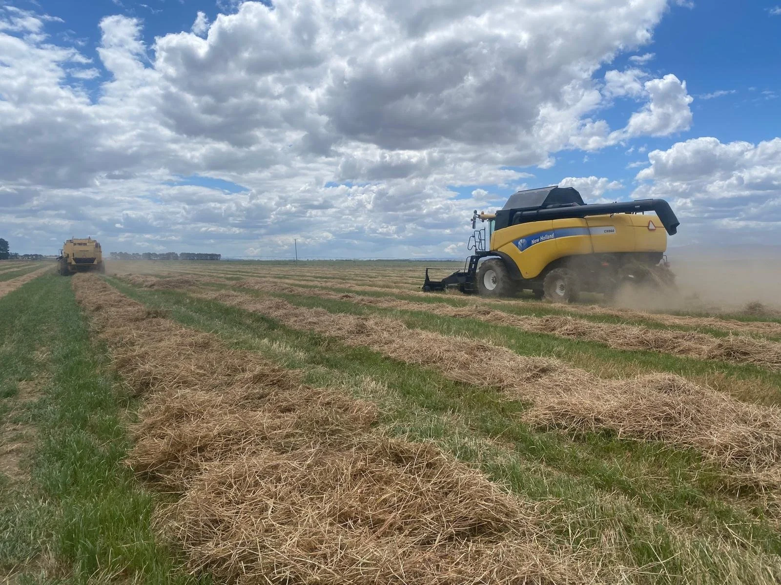 Ryegrass for pasture seed is the crop we harvest the most area of, we grow several varieties of ryegrass. These seeds are used in the domestic market for sheep, beef and dairy pasture renewal. The ryegrass is grown under irrigation in our crop rotation like a cereal between break crops. The crop is a pasture for our sheep and beef animals to enjoy for nine months of the year and locked up for seed production and managed as an arable crop between November and January before harvest. The seed is stored on farm for a period before being delivered to local seed cleaners. Straw from the crop is retained for supplement feed and any surplus straw sold to dairy farmers.